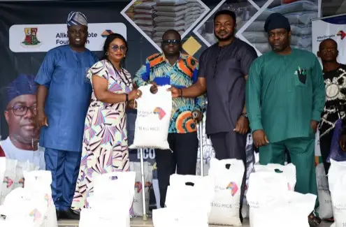He urged the beneficiaries to also share with people around them, adding: “I am here to present 30,000 bags of 10kg rice to Oyo State.